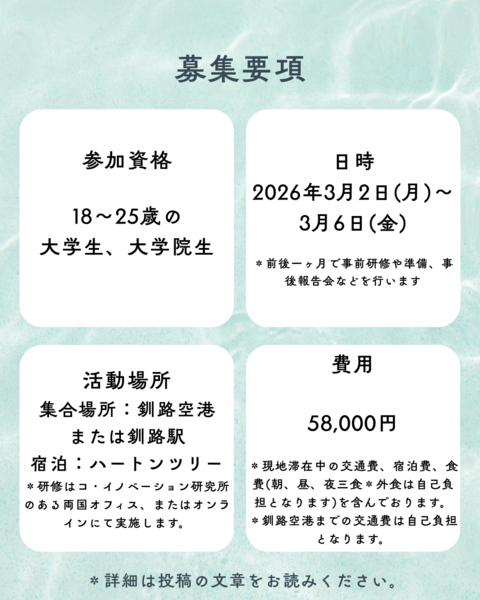 12月4日 鶴居村プロジェクト2025年度夏事後報告会実施予定
